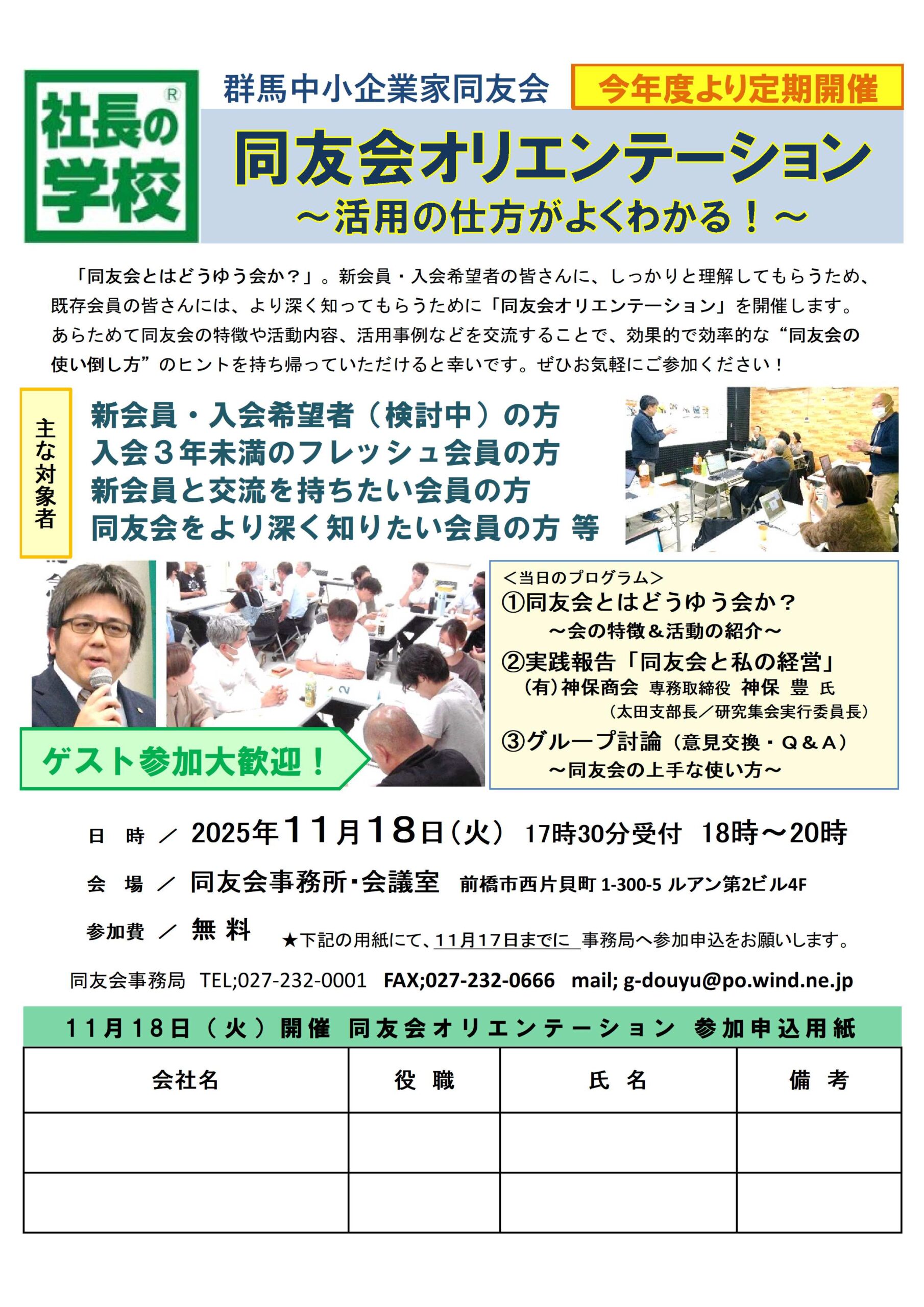 同友会オリエンテーション案内をUP!