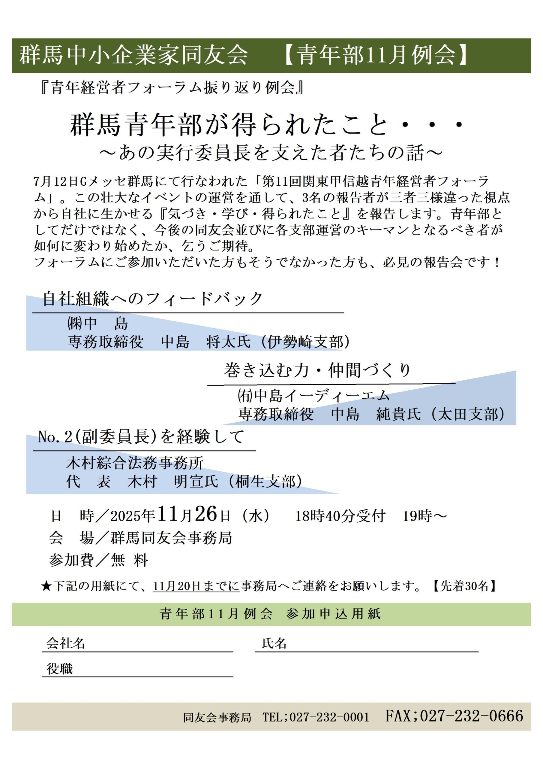 青年部11月例会案内をUP!